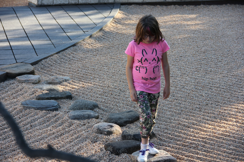 in the japanese zen garden outside. had to explain to Avery why the paths were not a race track.
